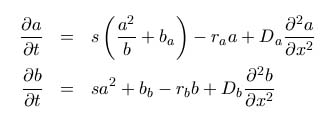 Die spezifischen Gleichungen für das Aktivator-Inhibitor-Prinzip lauten
