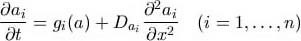beschreibt die Diffusion der zur Koordinatenfunktion ai