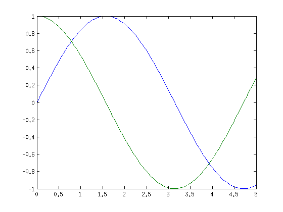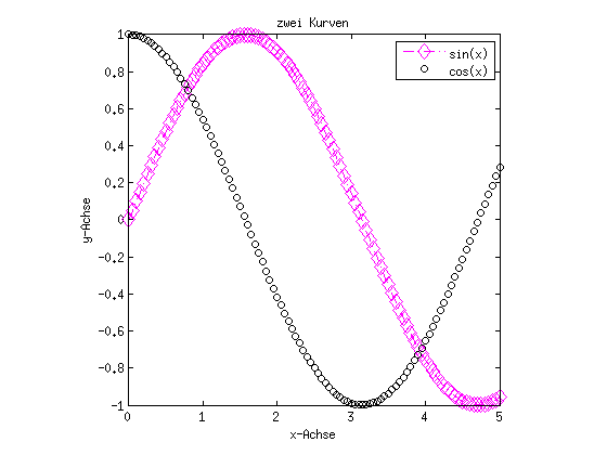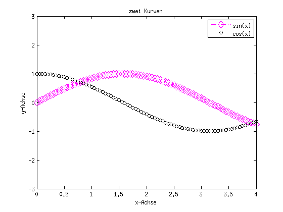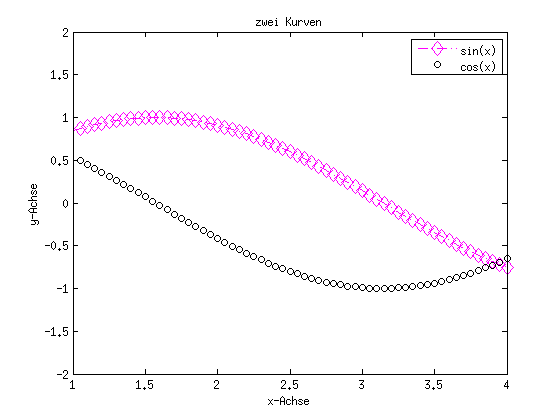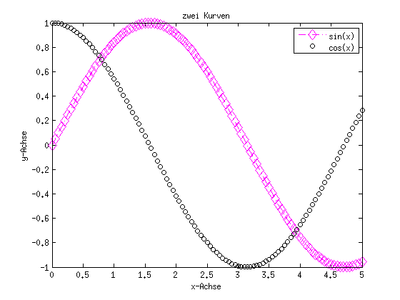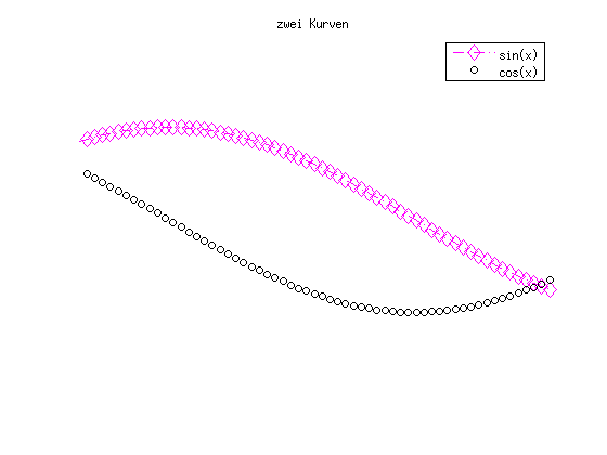 clc clf plot(x,y) % Graphik festhalten hold on plot(x,cos(x)) % Graphik wieder freigeben hold off